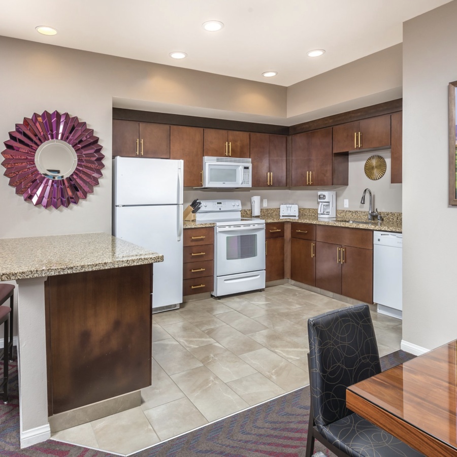 Master Bedroom with King Bed, Guest Bedroom with Two Twin Beds, Queen Murphy bed in Living Area, Patio or Balcony, Washer & Dryer, barbecue grill and a fully equipped kitchen including microwave, refrigerator, oven, dishwasher, stove, coffee and tea maker, toaster, cookware, flatware. Convenient comforts include cable TV, DVD player, and stereo with CD player.